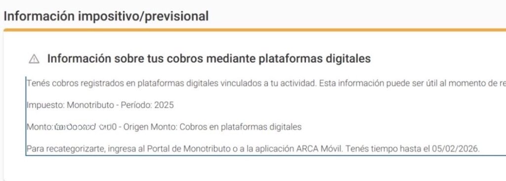 Pensemos en una situación simple, pero cada vez más frecuente: un monotributista que durante 2025 facturó 100, pero ARCA le informa en “Nuestra Parte” cobros por billeteras digitales por 200. Según la facturación emitida, ese contribuyente debería mantenerse o, en el mejor de los casos, subir una categoría. Pero si se toman los ingresos informados por ARCA, la realidad cambia por completo: podría corresponder una suba de varias categorías o incluso una exclusión.